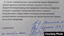 Автори листа говорять про скорочення кількості туристів у 4-5 разів! Представники окупаційної влади Криму утримуються від подібних оцінок, обмежуючись цифрою в 3 мільйони відпочивальників