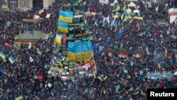 Близько тисячі майданівців беруть штурмом будівлю «Українського дому», де перебували бійці внутрішніх військ.