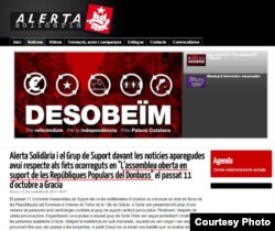 Із відео, записаного у той день, видно, що на столі лекторів прикріплене гасло «Солідарність з антифашистським Донбасом». За їхніми спинами – екран, на якому час від часу з’являються Ігор Коломойський, Петро Порошенко, чоловіки у військовій формі, прапори угруповань «ДНР» та «ЛНР». Лектори говорять з аудиторією каталонською, розповідаючи, що вони виступають проти капіталістів та Америки, а також координують «антифашистську діяльність» в Іспанії. Спікери висловлюють свою солідарність із так званими «республіками Донбасу».