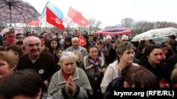 Поряд з нею стоїть дівчина, якій на вигляд 17-18 років, на її очах сльози. Вона не бажає вірити в те, що з 1 квітня телеканали ATR, Lale, радіостанції «Мейдан» і «Лідер» припинять своє мовлення.