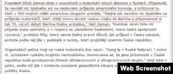 «Тому я не бачу нічого поганого в тому, що проїжджають мотоциклісти, які хочуть повторно провезти російський прапор до Берліна і згадати 70-ту річницю завоювання Берліна Червоною армією», – сказав президент Чехії Земан.