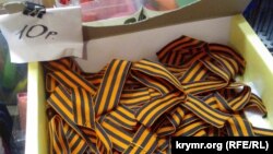 Виконуючи спущену зверху рознарядку «вквітчати» Крим до 9 травня у потрібні кольори, георгіївські стрічки на півострові активно роздають, ще активніше – продають. Як кажуть, кому війна, а кому мати рідна.