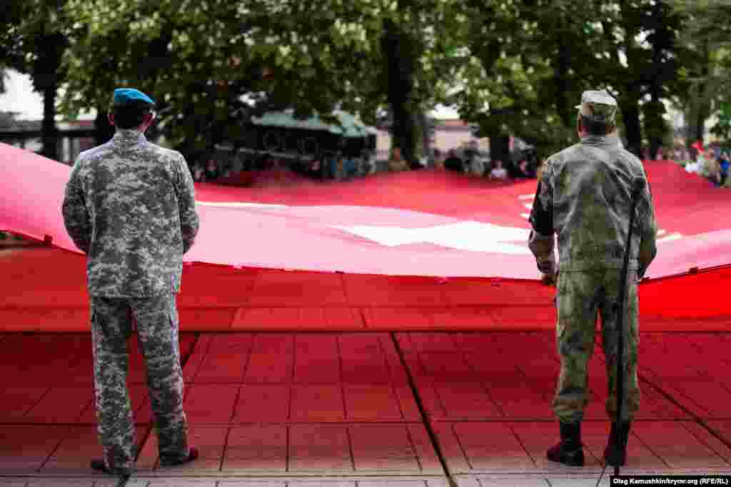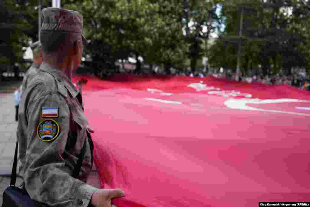 У Сімферополі перед будівлею Держради Криму розгорнули копію Прапора Перемоги площею 700 квадратних метрів.