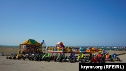 Майже таку саму картину можна було побачити біля торговельних яток із фруктами і сувенірами перед пірсом, а також навколо атракціонів, надувного басейну для дітей на пляжі.