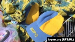 На ринках і в магазинах одягу досі продаються футболки, майки і головні убори з українською символікою. Наприклад, на одному з ринків кримської столиці можна придбати капітанську кепку з Андріївським і українським прапорами. Її вартість – 105 рублів. Або звичайну жовто-синю бейсболку.