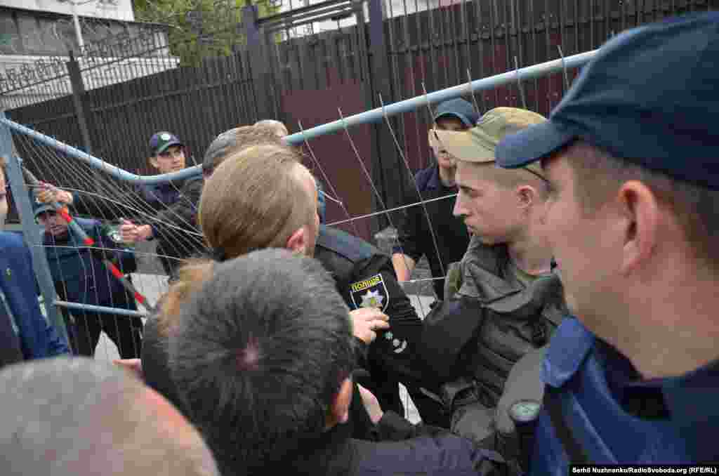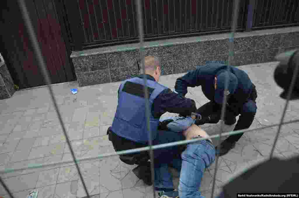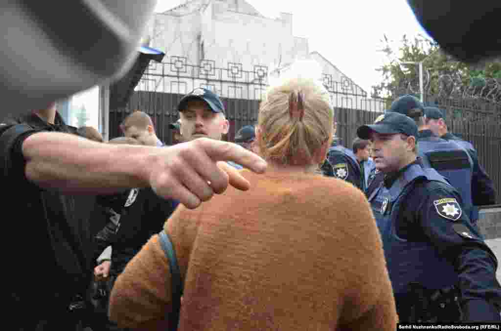 Крім того, як повідомив кореспондент Радіо Свобода, поліція затримала ще одного учасника акції біля російського посольства через інцидент із чоловіком, який, за його словами, хотів проголосувати у будівлі дипломатичного представництва Росії.