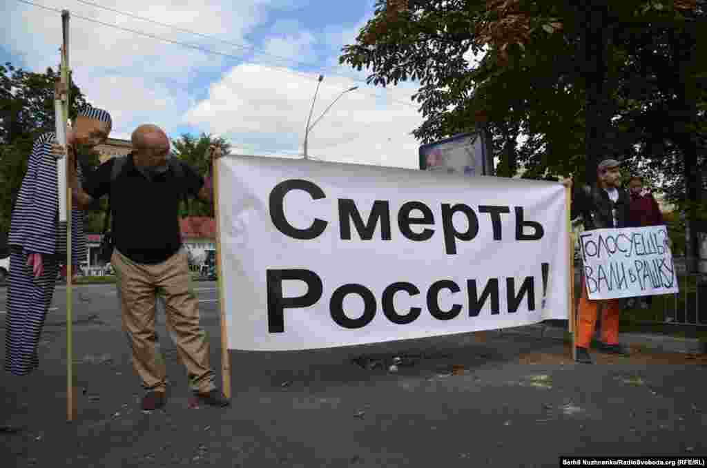 18 вересня у Києві біля посольства Росії активісти намагалися заблокувати прохід до входу в будівлю посольства Росії, де проходять вибори до російської Державної думи. Правоохоронці відтіснили протестувальників. Деякі ЗМІ повідомили про затримання учасника «блокади».