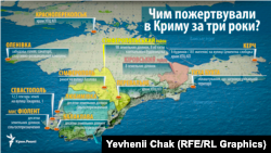 У нашому переліку ми не говоримо про кримські заводи й комерційні підприємства, які стали об'єктами «націоналізації» та переділу власності. Але звертаємо увагу на втрачені землі і власність рядових кримчан.