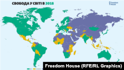 «Демократія в кризі. Цінності, які вона втілює, зокрема право обирати лідерів на вільних та чесних виборах, свобода преси та верховенство права зазнають нападів і глобального занепаду», – зазначає автор дослідження під назвою «Freedom in the world 2018» («Свобода у світі у 2018 році») Майкл Абрамовіц.