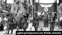 Дивлячись на такі випадки, історики нагадують про фашистську окупацію Чехословаччини 1939 року. Тоді судетські німці теж заявили про «возз'єднання з матір'ю-Батьківщиною». Вони виходили на вулиці з квітами, свастикою і фотографувалися з солдатами армії Гітлера.