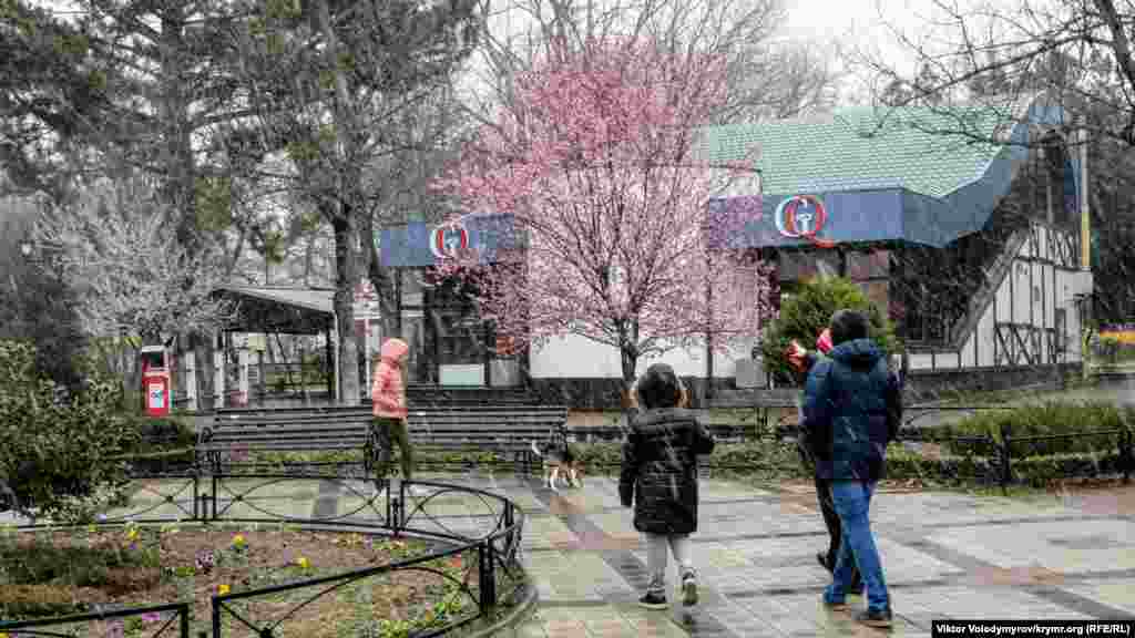 Сімферополь, 23 березня. У весняному місті несподівано випав сніг. За інформацією підконтрольного Росії МНС Криму, з вечора 23 березня і протягом 24, 25 березня в Криму очікується посилення північно-східного вітру – до 20-25 м/с. У зв'язку з цим на півострові оголошено штормове попередження.