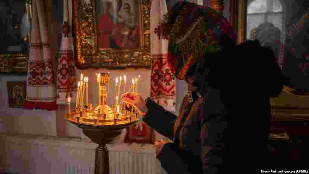 Традиційно, після закінчення служби, люди співали колядки та вітали один одного зі святом, що настає. Парафіяни відзначають, що святкова служба – це рідкісна можливість побачити знайомих під час пандемії. Кореспондент Крим.Реалії відвідав храм ПЦУ в Сімферополі.