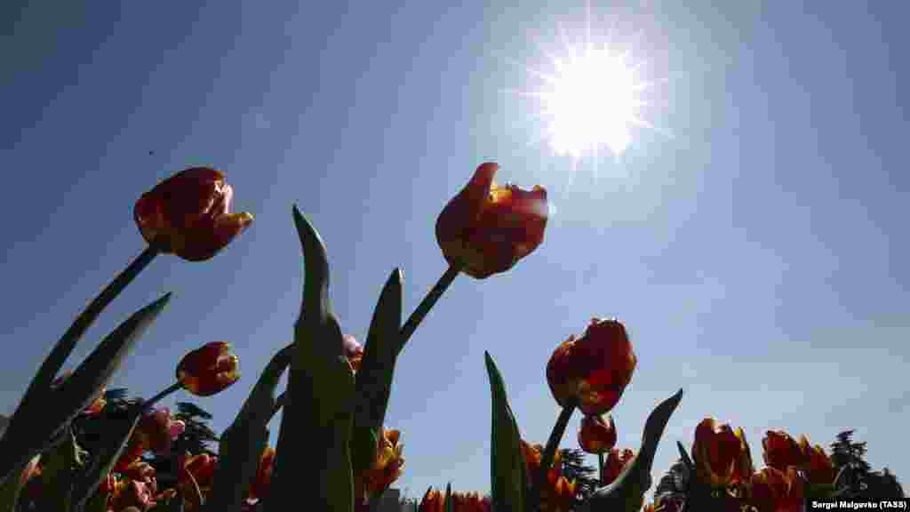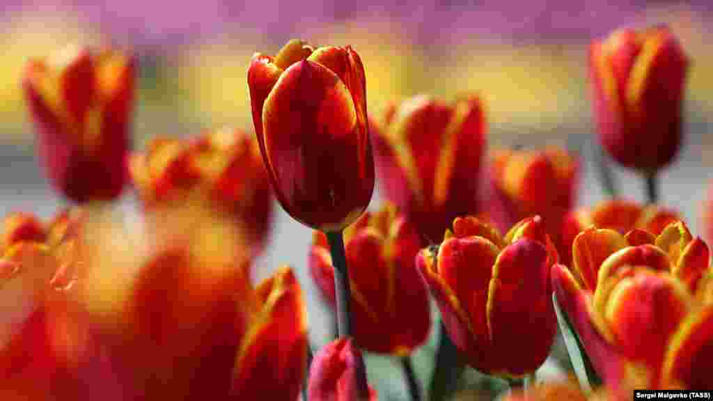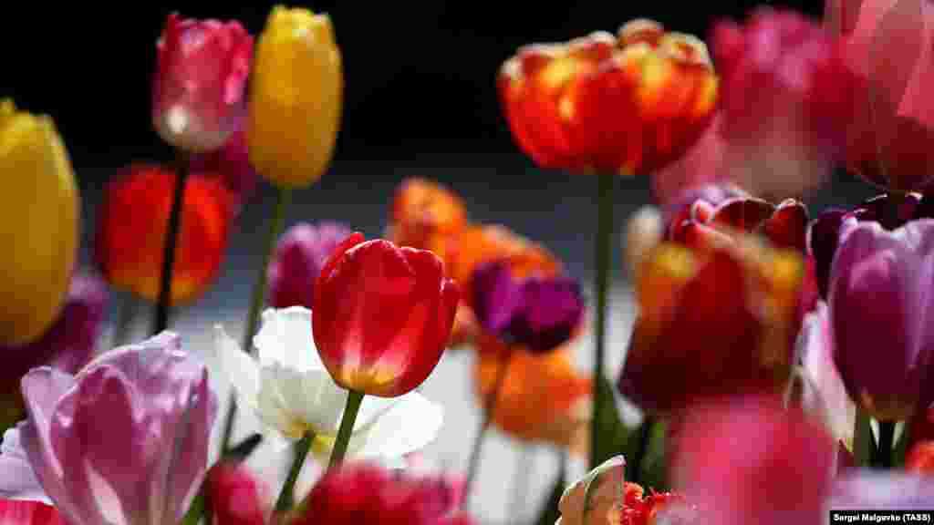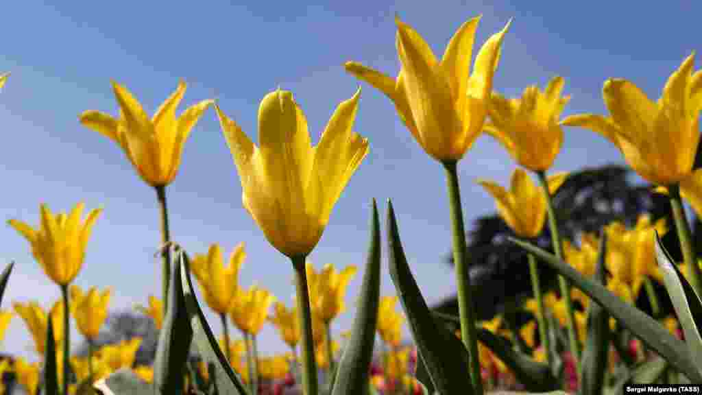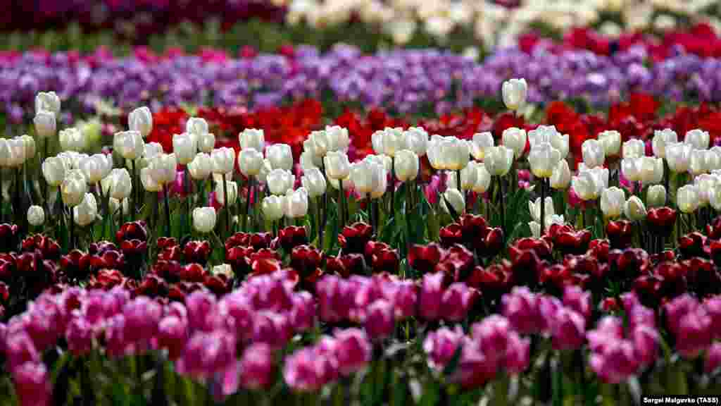 У Нікітському ботсаду квітнуть тюльпани. Зараз там немає відвідувачів: парк закритий до кінця квітня. Через пандемію коронавірусу виставку тюльпанів можна «відвідати» тільки онлайн.