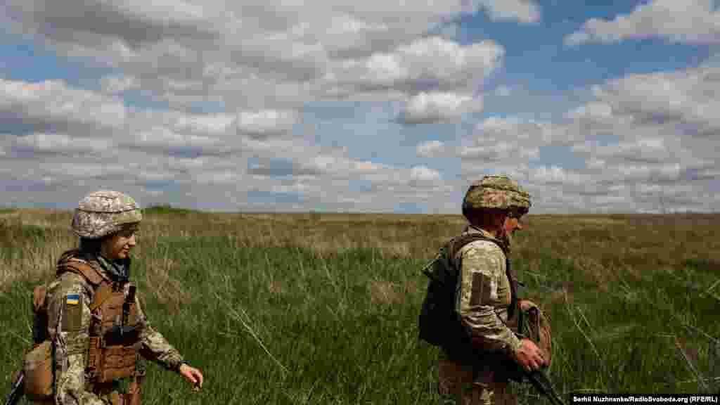 Українські військові йдуть на позиції ЗСУ. Донецька область, 28 квітня 2022 року