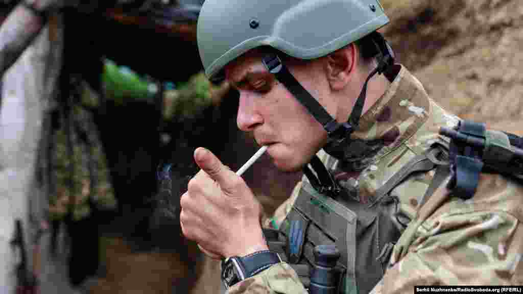 Український військовий Олексій на передових позиціях. Донецька область, 28 квітня 2022 року