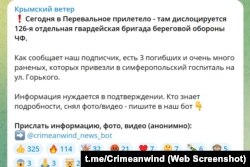 Телеграм-канал «Крымский ветер» повідомив про «приліт» у Перевальному, а також із посиланням на джерела повідомив про трьох загиблих та сімох поранених, яких «привезли до сімферопольського шпиталю на вул. Горького».