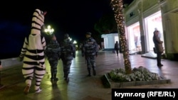 А ось патрулів на вулицях Ялти побільшало. На набережній можна побачити, наприклад, поліцейських поряд із «людиною-зеброю».