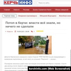Керівники сайту «КерчьИнфо» повідомили, що отримали телефонні дзвінки від представників російської влади Криму з погрозами та звинуваченнями. Це сталося після появи на сайті публікації про наслідки потопу в місті з критикою влади, а також спроби редакції захистити свій контент від несанкціонованого використання провладним державним телеканалом «Крым 24».