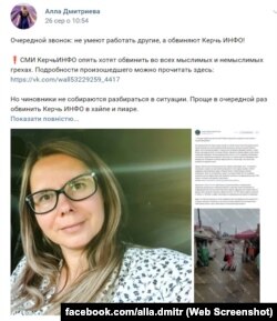 Зателефонували й у наказовому тоні сказали терміново прибрати статтю, опубліковану на «КерчьИнфо» добу назадАлла Дмитрієва