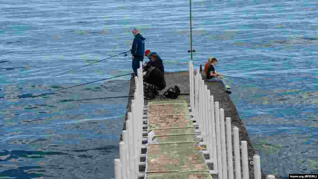 Дорослі і юні алуштинці рибалять з однієї буни біля центральної міської набережної. Поки їм не заважають це робити любителі поплавати та попірнати біля самих бун, оскільки морська вода ще не прогрілася до більш-менш комфортної температури (зараз це лише +14 градусів за Цельсієм). Рибальське щастя – зловити на вудку великого луфаря або морського окуня. Але понад усе рибалок цікавить барабулька або по-місцевому султанка. Вона ловиться з берега з травня по кінець липня. Після нересту, в кінці літа, риба худне і втрачає смак, розповідають рибалки.