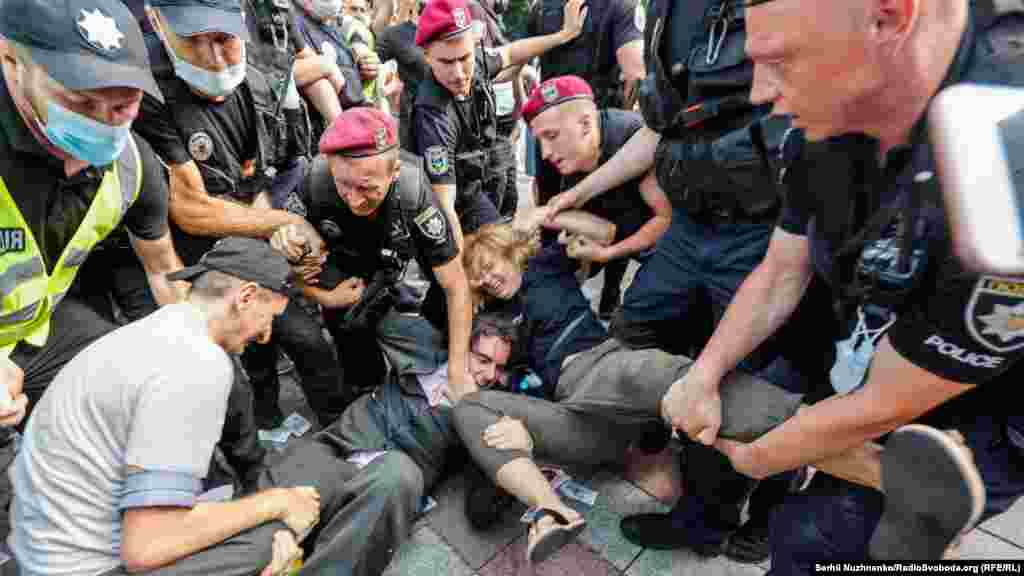 Його скрутили і відтягли за паркан.У затриманні активіста брав участь, зокрема, полк поліції особливого призначення (ПОП), який є правонаступником спецпідрозділу «Беркут». Загалом були силовики з кількох силових структур, серед них особи в цивільному, які безпосередньо брали участь у затриманні активіста