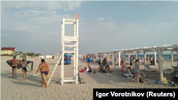 На пляжі теж не пропонують орендувати шезлонги або парасольки. Але відпочивальників це не зупиняє й вони все одно йдуть відпочивати туди. На пляжі досить багатолюдно.
