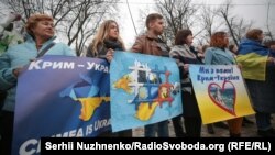 У Києві біля пам'ятника Тарасу Шевченку пройшла акція солідарності в боротьбі проти окупації Криму, повідомляє кореспондент Крим.Реалії.