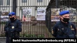 У будівлі посольства Росії в Києві 26 травня, з нагоди річниці оборони ЗСУ Донецького аеропорту, відбулась акція «Тризна за загиблими на російсько-українській війні», повідомляє кореспондент Крим.Реалії.