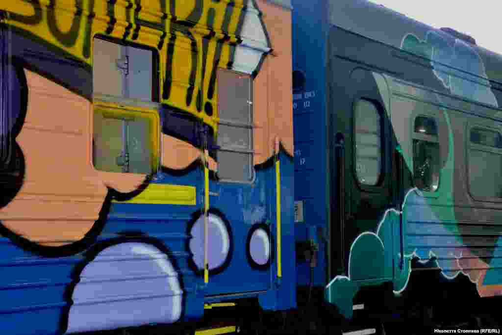 Українські художники розмалювали балончиками з фарбою вагони потягу