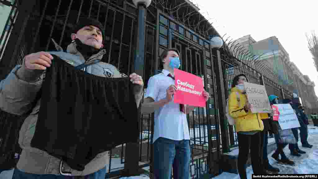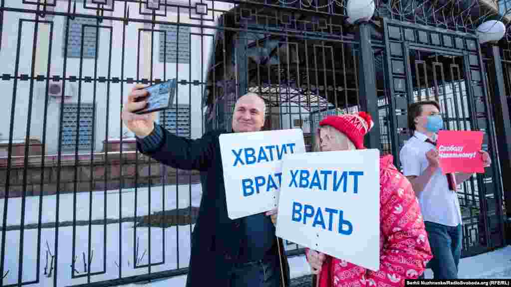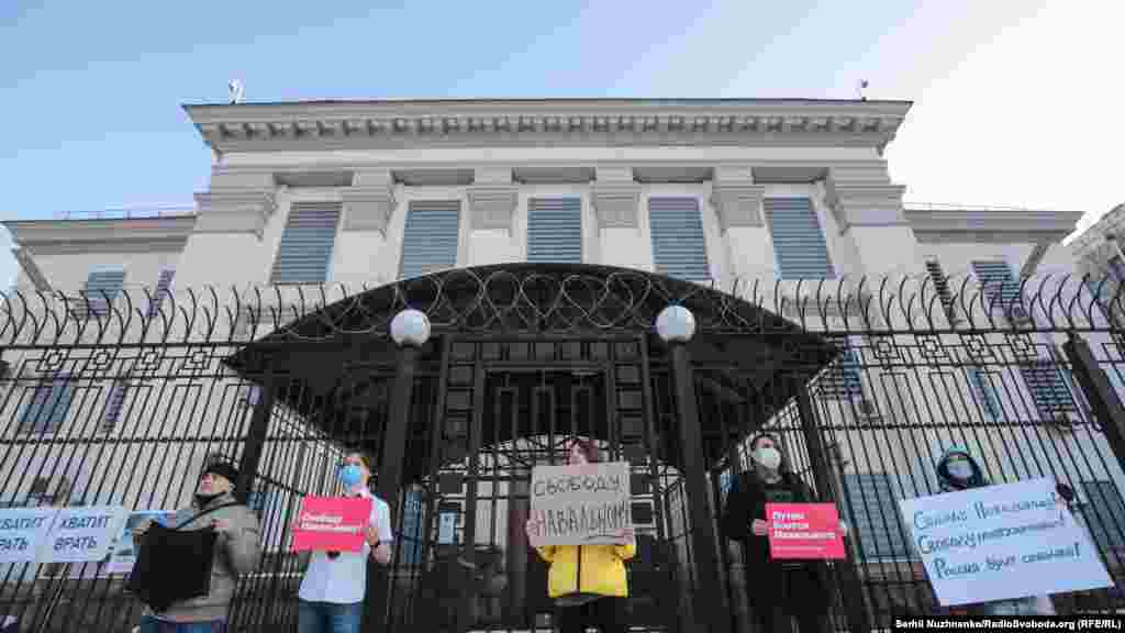 За словами кореспондента Радіо Свобода, приблизно 10-15 осіб тримали в руках плакати, ще приблизно 30 були присутні як учасники акції та глядачі. Майже після закінчення акції до посольства прийшли приблизно 20 чоловіків. Вони зривали плакати на підтримку Навального з паркану посольства, а також виривали їх із рук учасників акції.