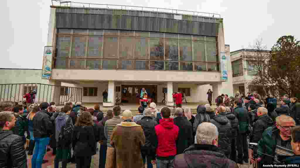Священик місцевої єпархії Московського патріархату отець Вадим проводить молебень перед Центром культури академії біоресурсів і природокористування