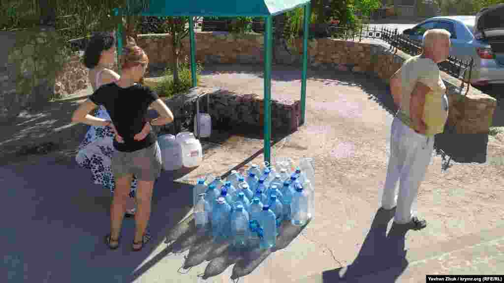 Люди набирають воду з артезіанської свердловини термальних вод у селі Верхньосадове | Кримське фото дня
