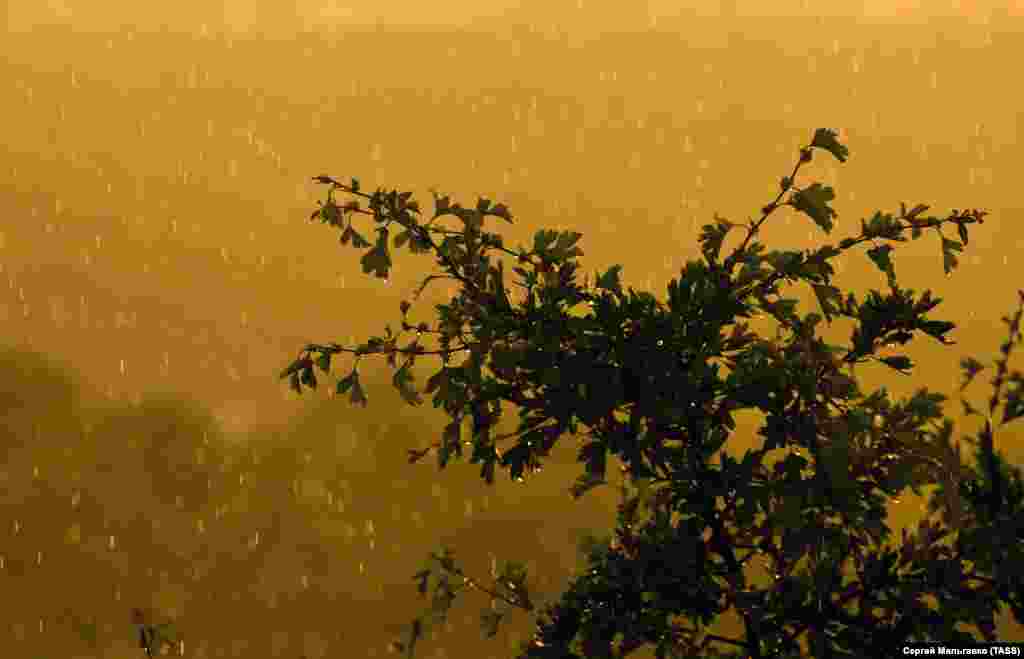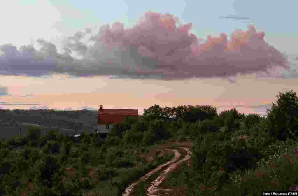 Пропонуємо насолодитися знімками дощу в селі Клинівка під Сімферополем, що пройшов на тижні, краєвидами сільських ландшафтів і полум'яним заходом.