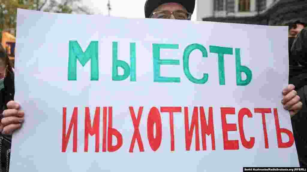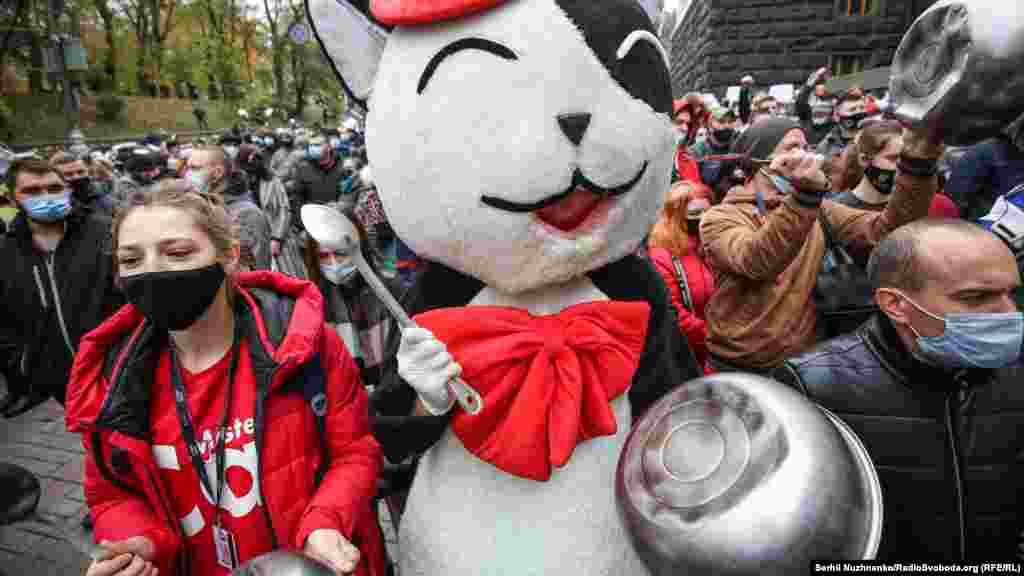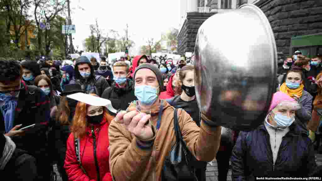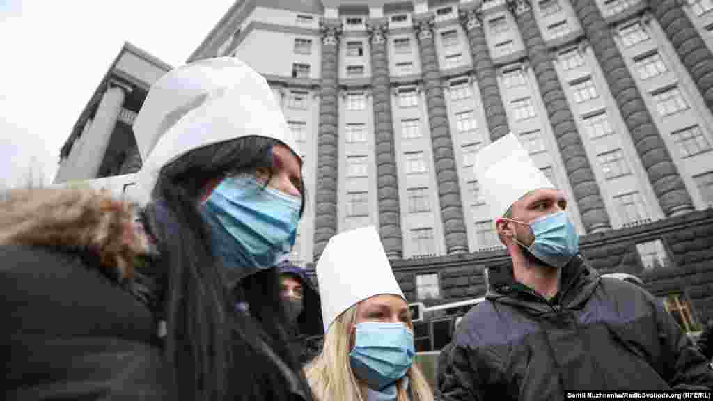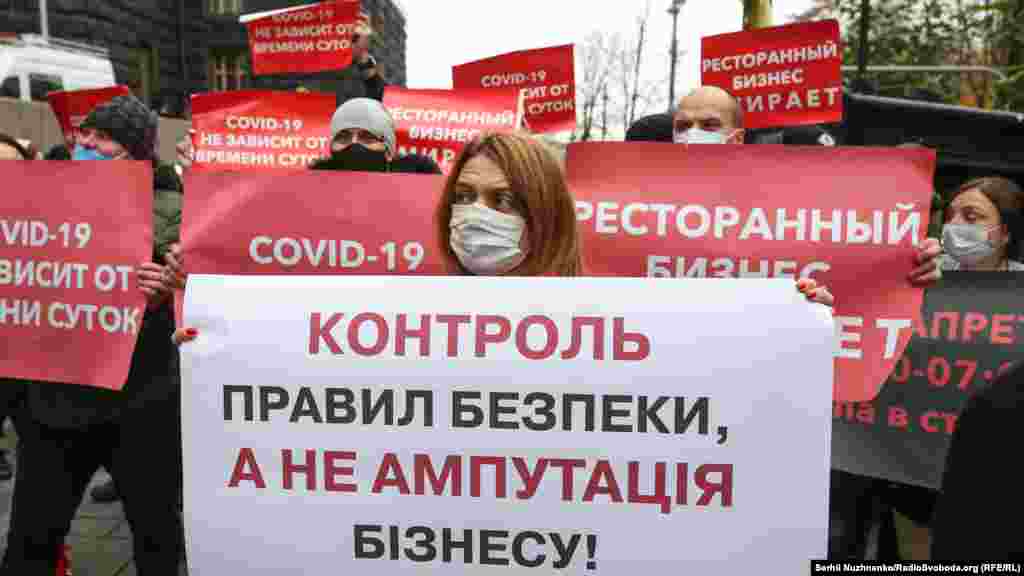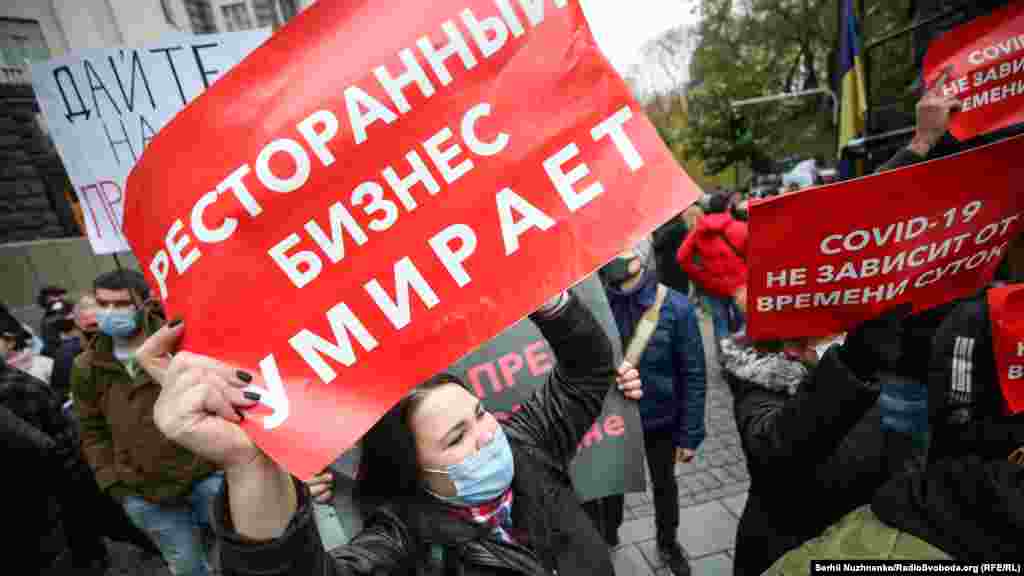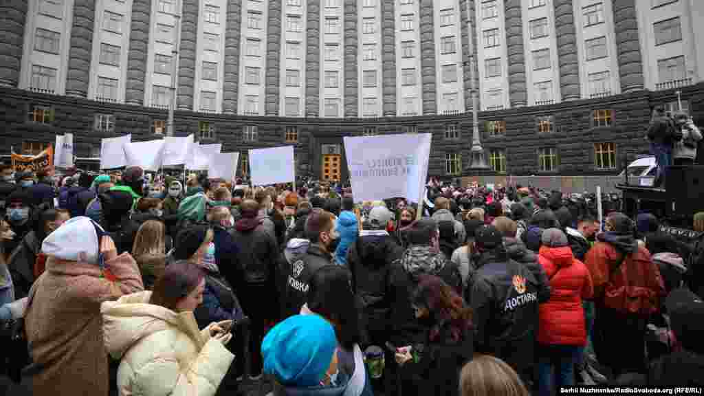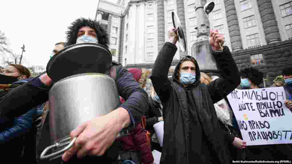 Під будівлею Кабінету міністрів України у середу зібралися кілька сотень активістів, зокрема представники ресторанного бізнесу, на акцію протесту під назвою «Маю право працювати».