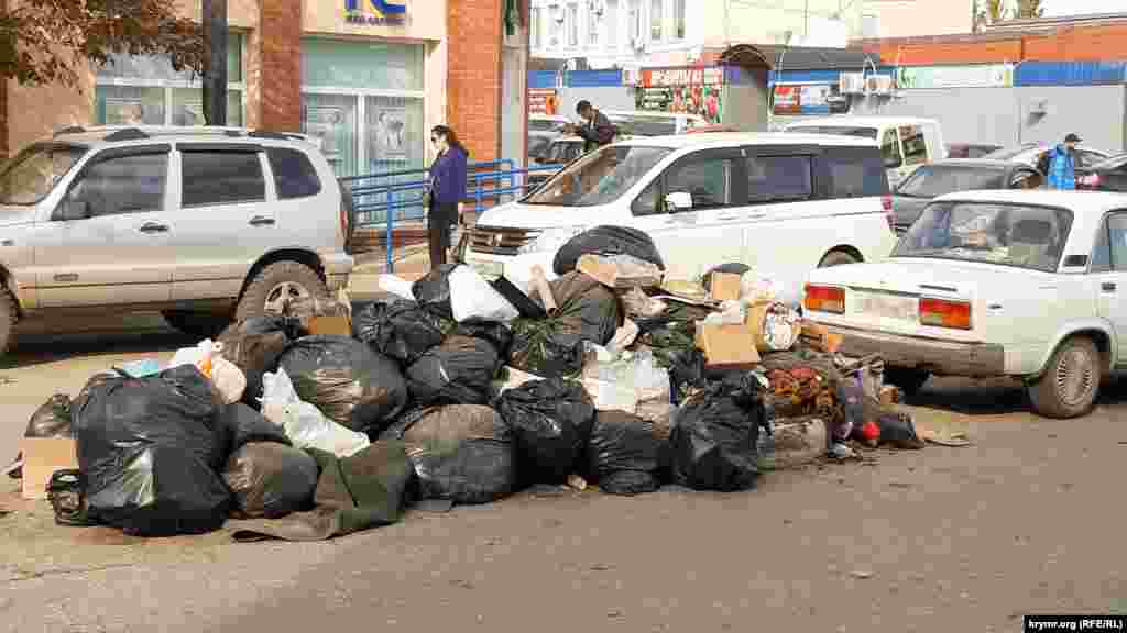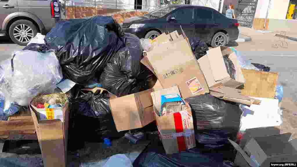 У центрі Керчі місцеві жителі складують побутові відходи прямо посеред вулиці. Купи сміття лежать і на одній із центральних вулиць міста – вулиці Козлова, яка з'єднує вулицю Леніна і центральний ринок.