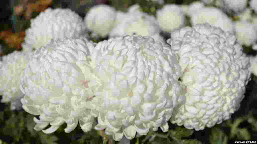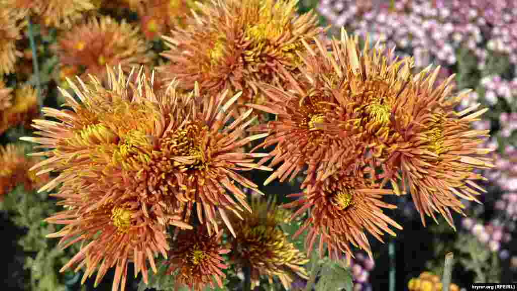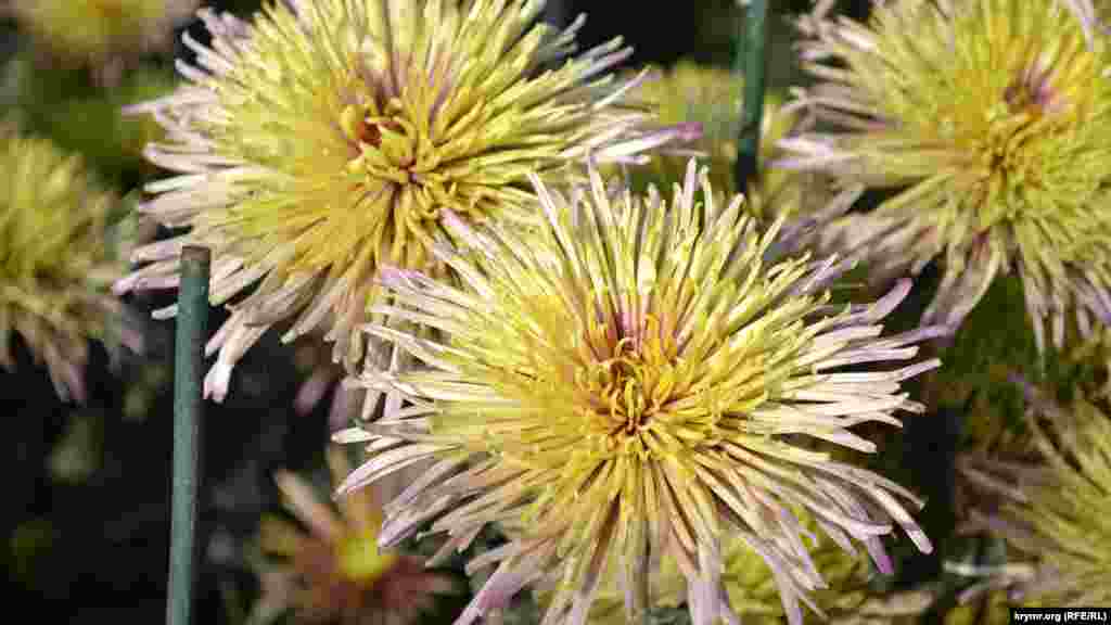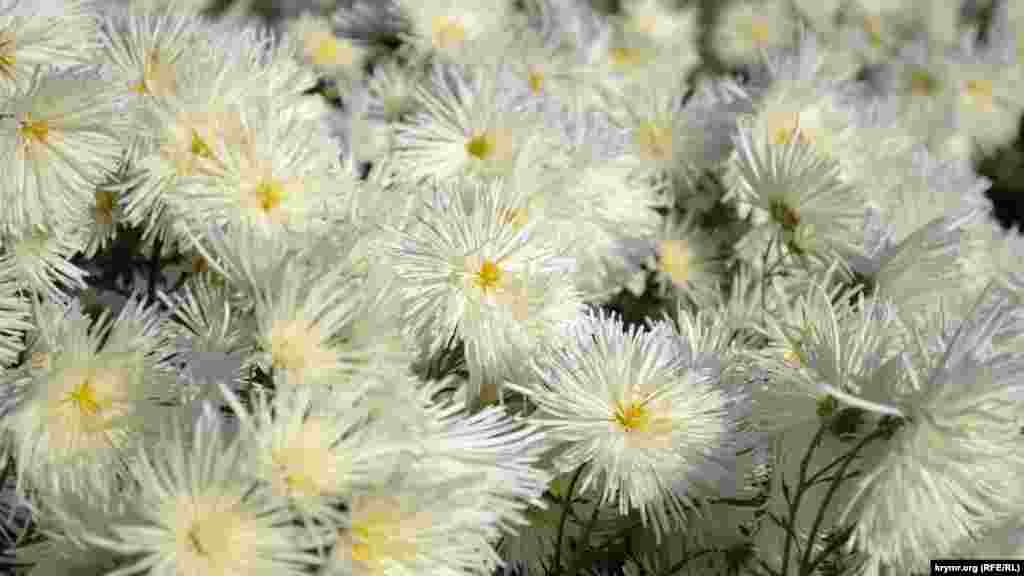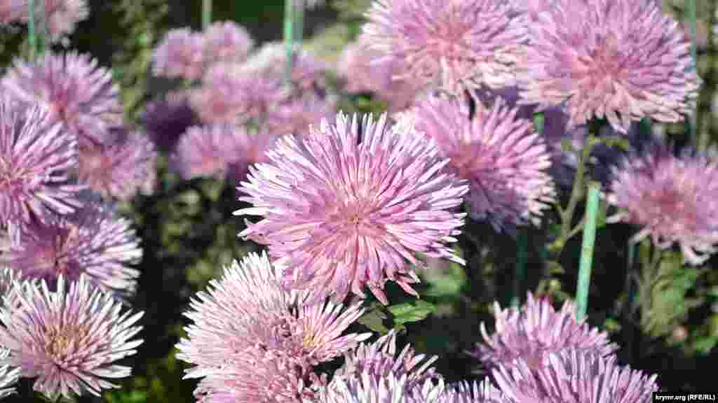 Зараз у Нікітському ботсаду спостерігається пік цвітіння всіх видів хризантем – і дрібноквіткових, і крупних суцвіть. Селекціонери саду виводять сорти найрізноманітніших форм пелюсток, відтінків суцвіть і розмірів квіток.