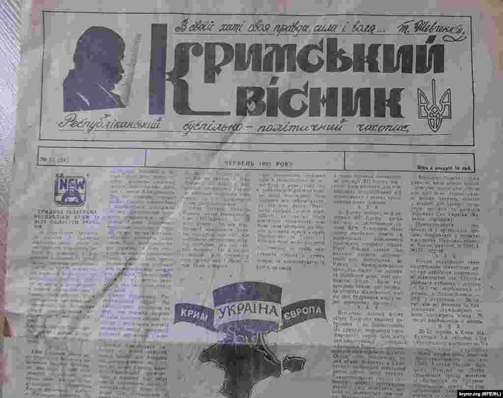 Так у 1993 році виглядала перша шпальта видання «Кримський вісник». Червневий номер відкривав текст, ілюстрований гаслом «Крим. Україна. Європа».