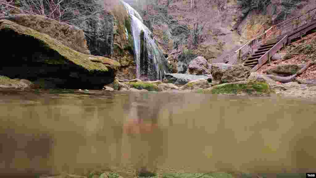 Найпотужніший і повноводний водоспад Криму Джур-Джур розташований у мальовничому місці, густо порослому лісом і з усіх боків оточеному горами. Водоспад виточив п'ять заглиблень, що наповнилися водою. Їх називають «ваннами», температура води в них – приблизно 10 градусів. Вважається, що якщо зануритися в одну з них, весь рік не будете хворіти. Пропонуємо подивитися на водоспад в середині кримської зими.