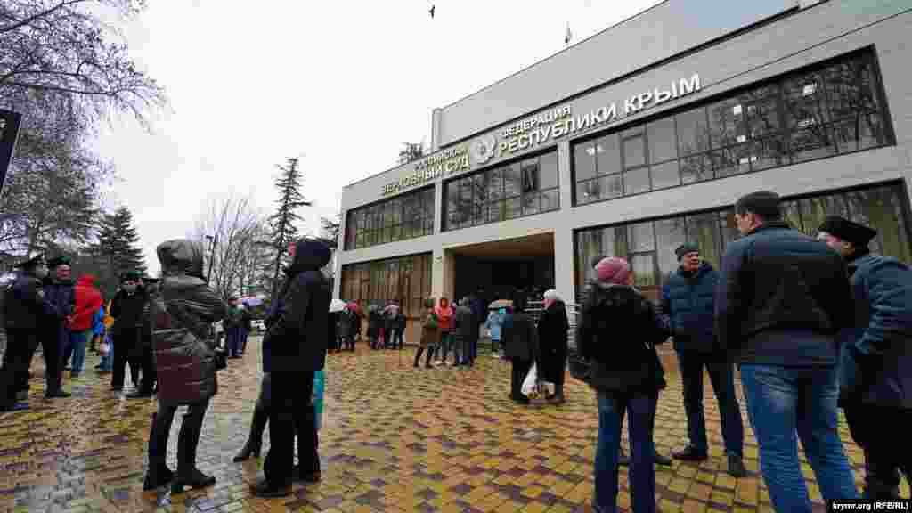 Під будівлю підконтрольного Росії Верховного суду Криму прийшли понад 100 осіб, щоб підтримати власника парку «Тайган» Олега Зубкова. 3 лютого підконтрольний Росії Білогірський районний суд під час засідання у справі вкушеної левом у парку «Тайган» туристки Ольги Соломіної заарештував кримського бізнесмена Олега Зубкова. 11 лютого підконтрольний Росії Верховний суд Криму ухвалив рішення про зміну запобіжного заходу щодо Олега Зубкова і звільнив його з-під арешту.