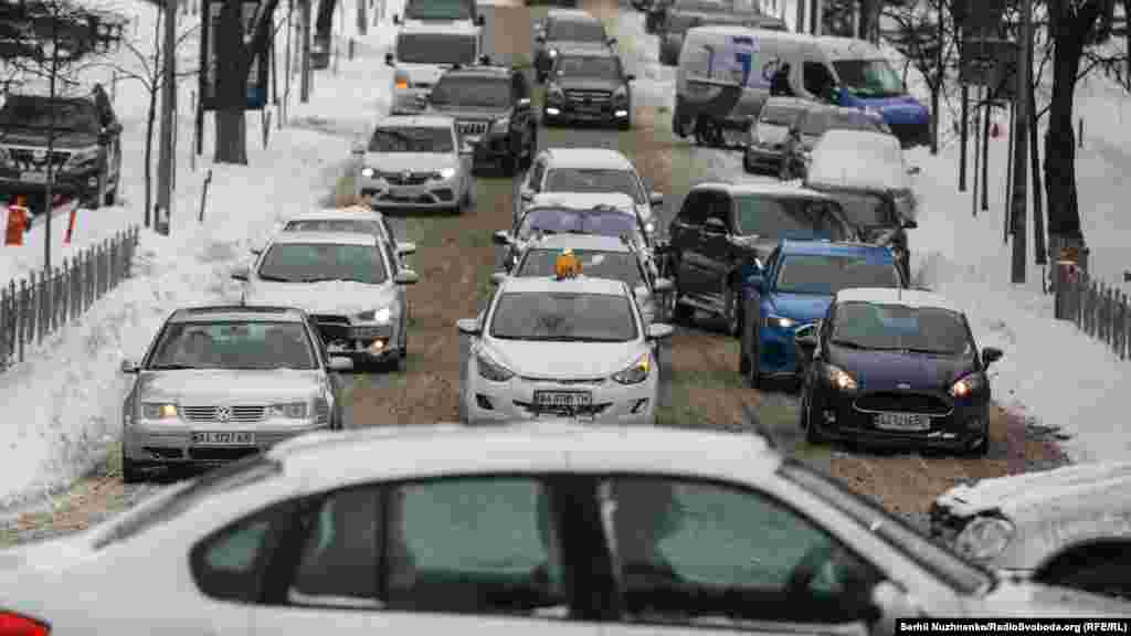 У Києві з 8 до 9 лютого випало майже 30 сантиметрів снігу. Автомобільний рух по всьому Києву був ускладнений, а рейси в міжнародному аеропорту «Бориспіль» затримувались.