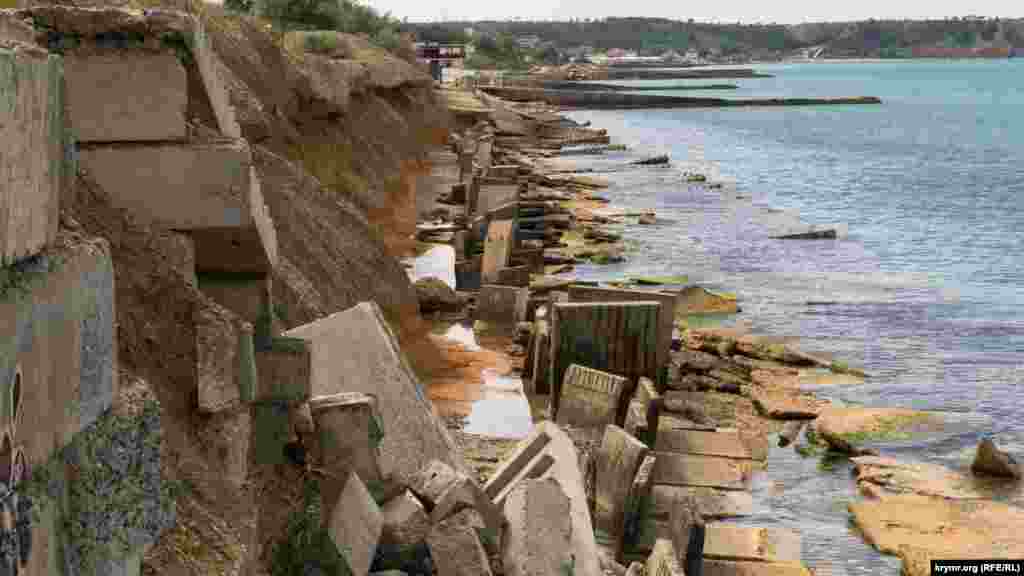 Торгові та розважальні об'єкти, розташовані біля моря, ще зачинені. А вздовж пляжу на сотні метрів розтяглася аварійна берегова інфраструктура.