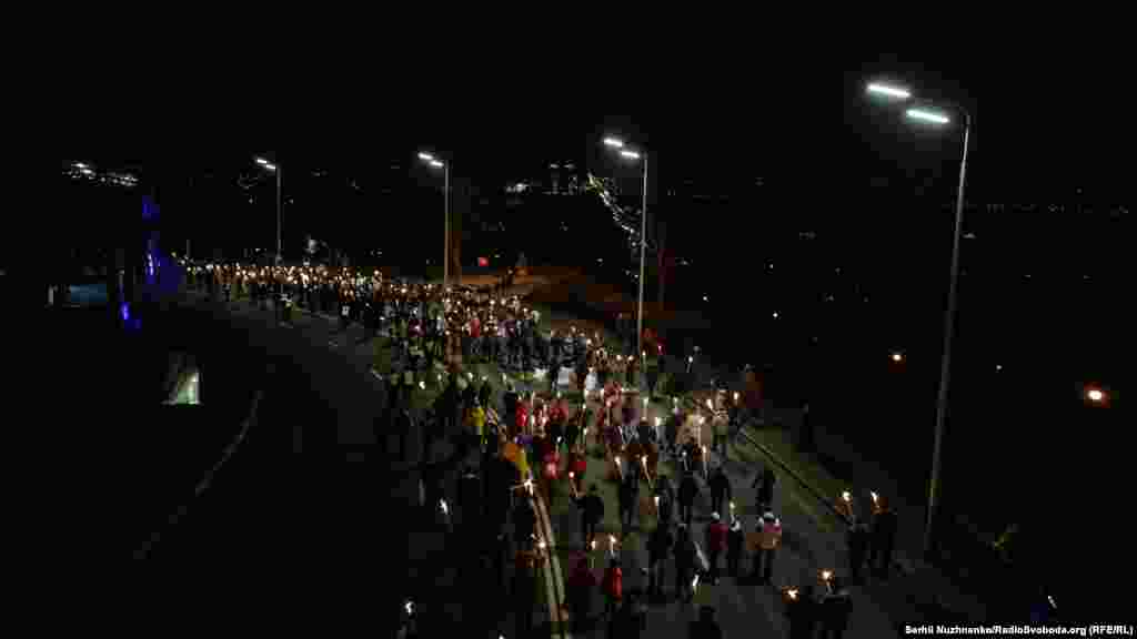По закінченню реконструкції від Арсенальної площі до Аскольдової могили пройшов смолоскиповий марш до Дня пам'яті Героїв Крут.