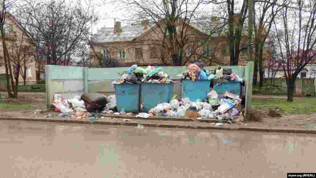 У Керчі комунальні служби майже в усіх районах міста не вивозять сміття. В результаті в новорічні свята в місті переповнені сміттєві контейнери і територія поруч із ними.