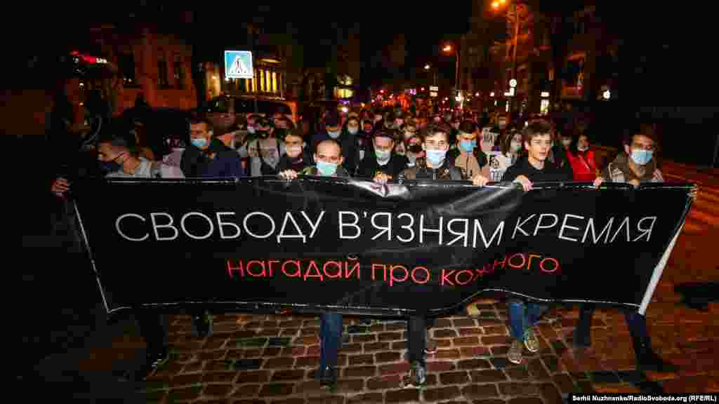 Сьогодні у Києві відбулась всеукраїнської акції «Нагадай про кожного» на підтримку політв'язнів, які досі перебувають у Росії, на непідконтрольних Україні територіях Донбасу, та в анексованому Криму.