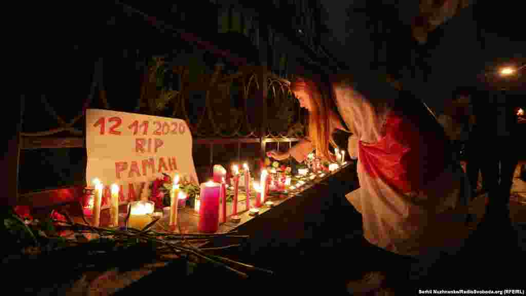 Кілька десятків білорусів зібралися пізно увечері 12 листопада біля посольства Білорусі в Києві на акцію пам'яті Романа Бондаренка. Присутні запалили лампадки та свічки біля паркану посольства і вигукували: «Вбивці» та «Трибунал».