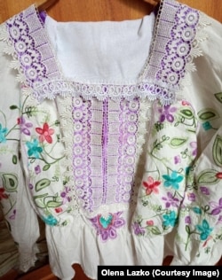 73-річна Олена Лазько – з Великої Новосілки, за 90 кілометрів від окупованого Донецька. Народилася в родині педагогів і сама 40 років пропрацювала в школі. Має дві вищі освіти – історика та психолога. Рукоділлям захоплюється з дитинства – за швейну машинку сіла в шестирічному віці. Ще студенткою – у Донецьку – почала вивчати українську вишивку.
