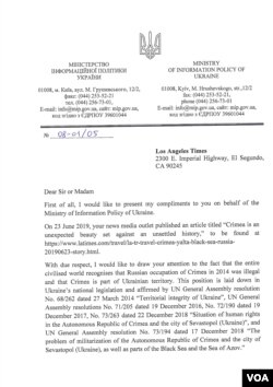 9 липня Міністерство інформаційної політики України підготувало офіційного листа для редакції Los Angeles Times. «Голос Америки» отримав копію цього листа.