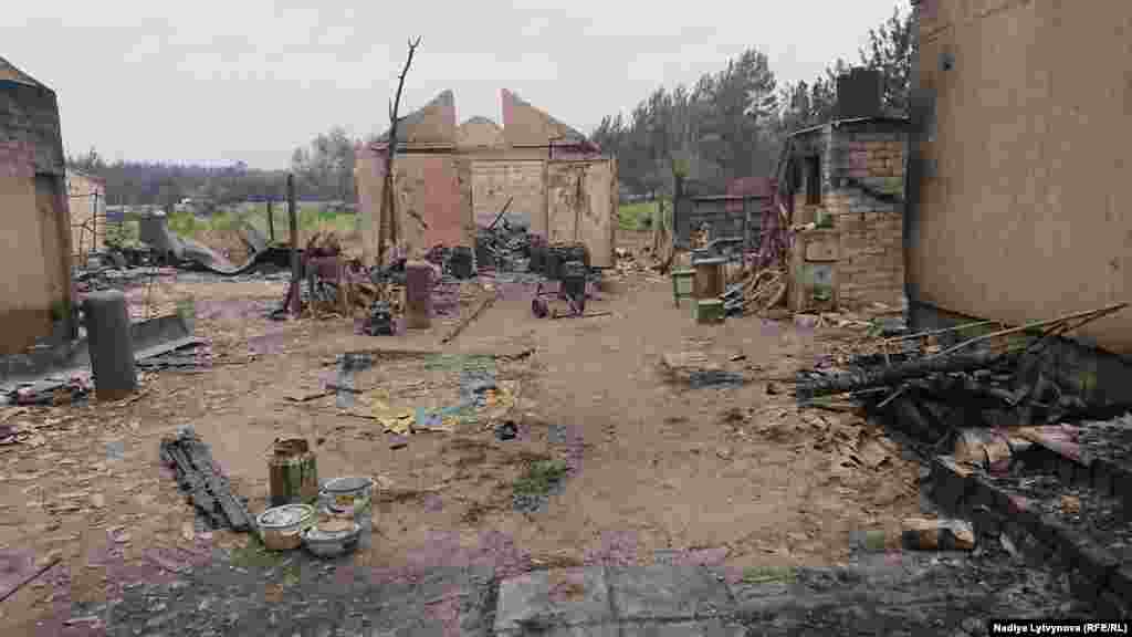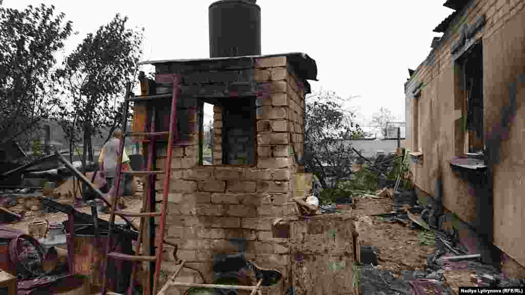 Люди повертаються до згорілих будинків у Смоляниновому 8 липня. Валерій прожив у цьому будинку 35 років