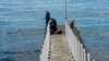 Дорослі і юні алуштинці рибалять з однієї буни біля центральної міської набережної