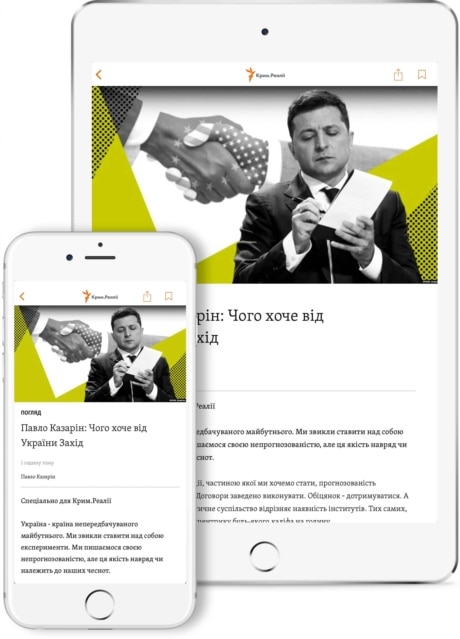 Встановити оновлений додаток Крим.Реалії для смартфонів і планшетів на платформі iOS і на платформі Android: